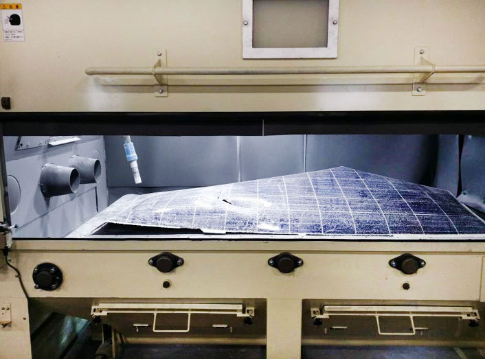 この処理技術により、災害等で凹凸に変形してしまった太陽光パネルのカバーガラスも装置側の調整(クリアランスなど)無しで処理可能となる。
